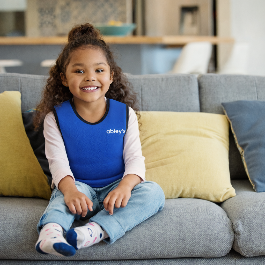 Abley's Weighted Compression Vest for Kids | 2lb and 3lb Removable Weights | Deep Pressure Sensory Vest for Autism, ADHD | Blue